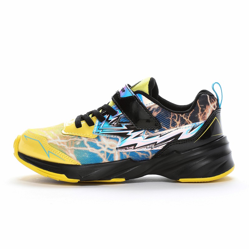 男の子の様々な潜在能力を解き放つシリーズ「スキルシューター」の「雷スキル ジンライ」です。「スキルを解き放て」をコンセプトに子どもたちの多様化するシーンに合わせた「SKL」をアウトソールに搭載しており、踏み込む際の荷重によって「SKL」が発動します。「雷スキル」は雷をモチーフにしたスパイク形状の「SKL」が走る際に発動し、走りをアシストします。重さは21.0cmで片足約175gです。【Ag+抗菌防臭】銀イオンの抗菌作用でにおいのもととなる菌の増殖を抑制し、防臭効果を発揮します。【洗えるインソール】インソールは取り出して洗えるのでいつも清潔に保てます。【耐摩耗ラバー】靴底にはすり減りが少なく、高い耐久性を発揮するラバーを採用しています。脱ぎ履きしやすいゴム紐×バンドタイプです。サイドのイナズマの下にシンプルなグラデーションのプリントが目を引くポイントです。ほとばしるイナズマのグラフィックがカッコ良い、インパクトのある一足です。