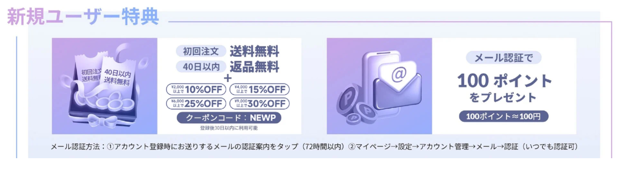 セールやクーポンプレゼント、ポイント倍増キャンペーンなどのイベントを365日毎日開催しています。税抜5,000円以上で送料無料