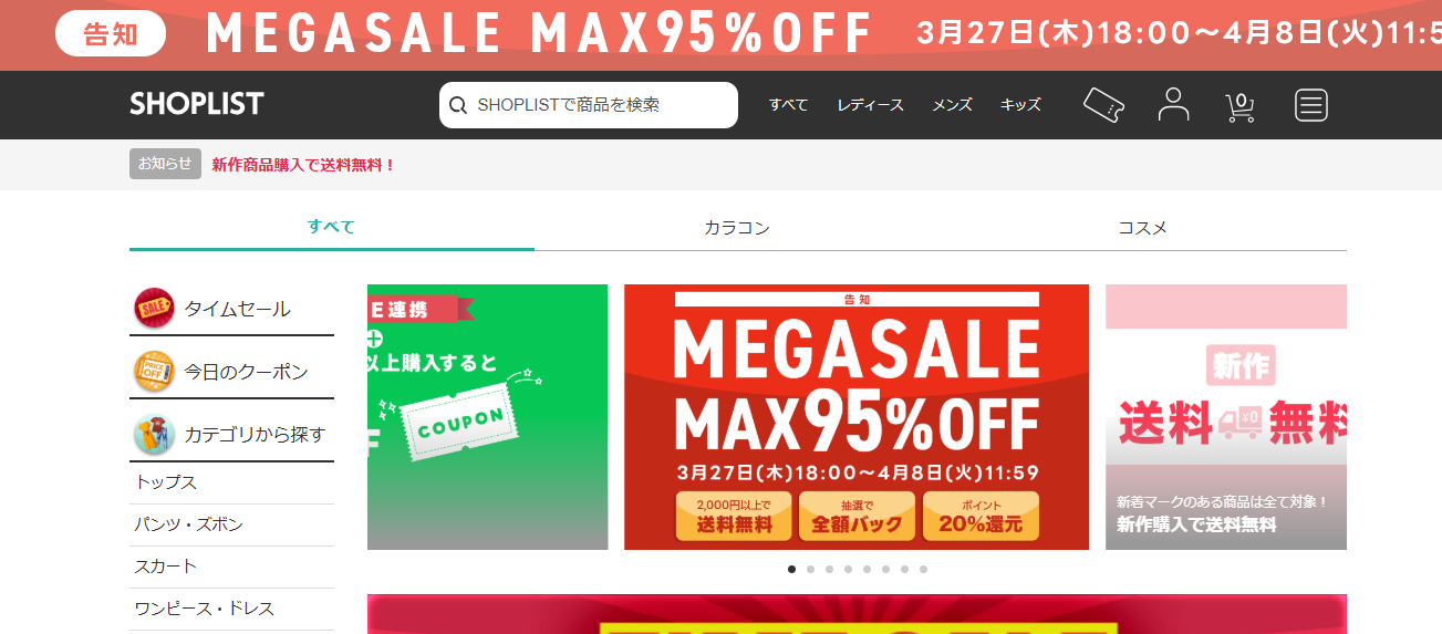 SHOPLIST(ショップリスト)はレディース・メンズ・キッズのファストファッションや、コスメ・インテリアまで、幅広いジャンルのアイテムをまとめて購入できる通販サイトです。