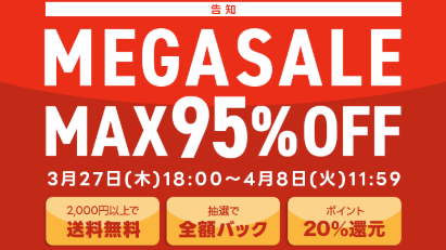 只今、春の感謝祭最大90%OFF実施中!!!