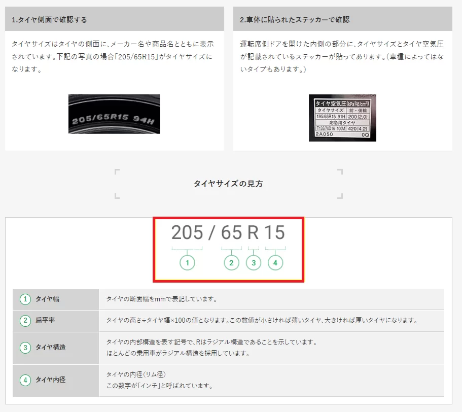 <STEP0> 車のタイヤサイズを確認(タイヤサイズをメモしよう)