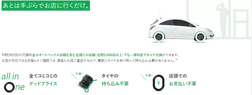 タイヤ購入と交換予約がWebから簡単に出来るのは分かった