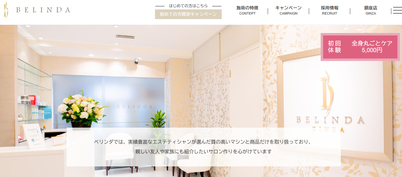 ベリンダは、銀座と表参道にあるエステサロンです。