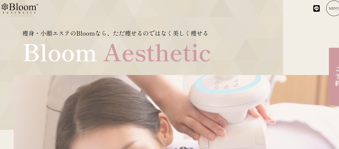 | 体験コースの種類(税込) | 全身しっかりダイエットプラン!2回体験(100分):17,600円 Bloom超特痩身最大15回コース(100分):13,200円 セルライト・むくみ解消!プラン3回体験(50分):9,900円 ぽっこりお腹はさようなら!プラン2回体験(50分):16,500円 目指せ華奢な二の腕!プラン2回体験(80分):16,500円 |