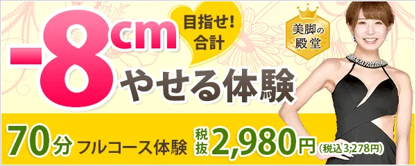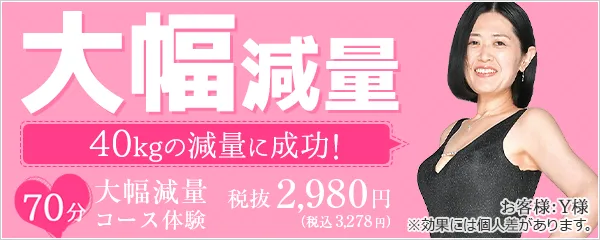 | 体験コースの種類(税込) | 全身丸ごとケアコース:5,000円 ブライダル痩身コース:5,000円 |