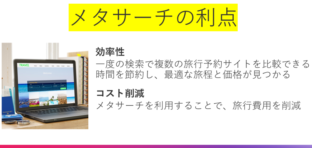 希望の条件で最安値の便を見つけやすいのが魅力です。