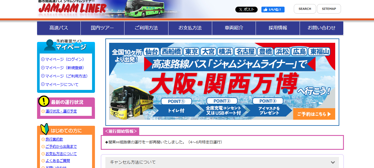 名古屋市に本社がある会社「JAMJAMライナー」。関東を中心に全国へ高速バス・夜行バスを運行しています。東北や北陸方面への路線が充実しています。
