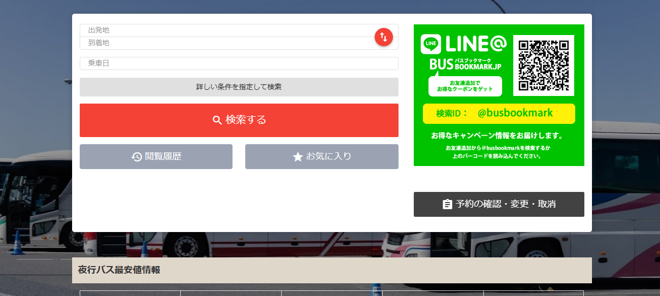 バスブックマークは、夜行バスや高速バスのチケットを安く購入したい人、頻繁に利用する人におすすめの予約サイトです。