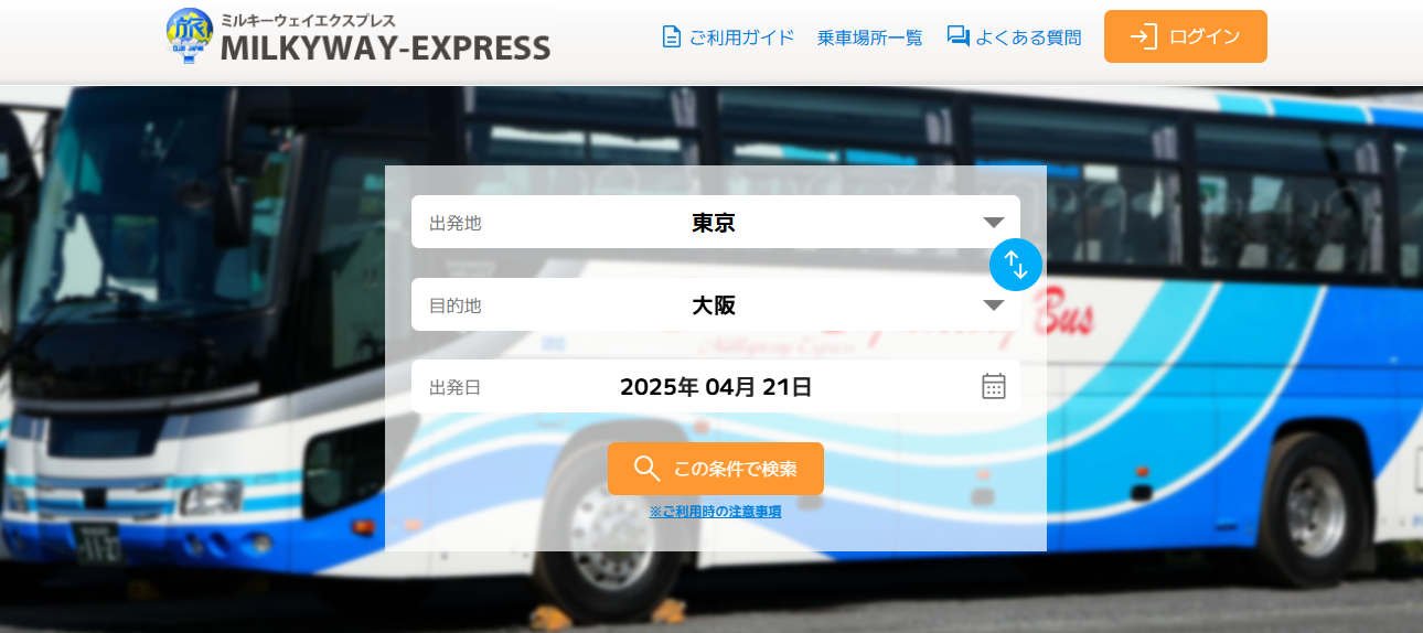 ユーザーは、出発地と目的地、日付を入力するだけで、複数のバス予約サイトの情報を一括で閲覧でき、最安値のプランを簡単に見つけられるのです。