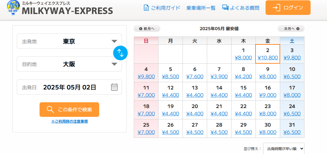 これまで紹介した3社に比べバスの種類は多くありませんが、とにかく料金が格安なのがメリットです。