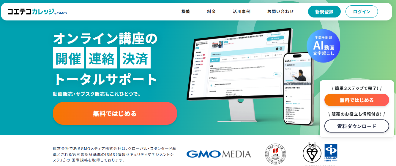 新機能として、AIによる動画の要約機能まで登場し、受講者の学びを管理・効率化できるオールインワンプラットフォームとなりました。スマホだけでも、簡単にスクールを開設できますので、まずは無料プランから試してみましょう。