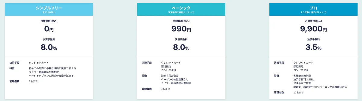 チャットサポート、優先サポート、Slack連携、アンケート機能、受講生一括CSVインポート、公式LINE連携、アフィリエイト機能 |